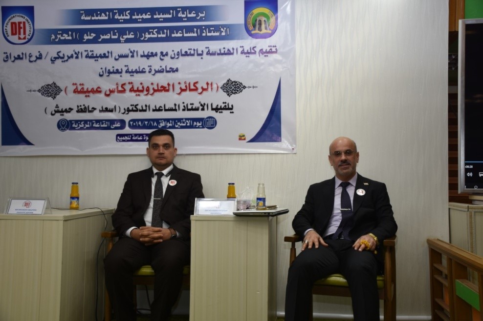 وتضمنت الندوة التي عقدت بالتعاون مع معهد الأسس العميقة الأمريكي / فرع العراق محاضرة قدمها الدكتور علي ناصر إبراهيم تناول خلالها نشاطات معهد الأسس الأمريكي فرع العراق.