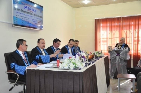 ناقشت رسالة ماجستير في كلية العلوم بجامعة ديالى , تأثير التغذية الممغنطة على كثافة العظم الحي .