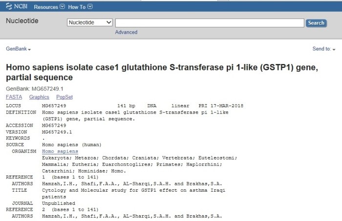 تمكن فريق بحثي في كلية العلوم بالجامعة المستنصرية، من تسجيل تتابعات جينية عراقية جديدة مرتبطة بمرض الربو في بنك الجينات العالميNCBI.