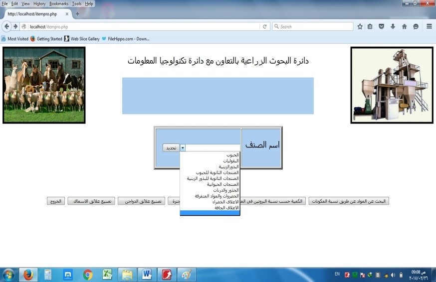 وبيّن أن البرنامج يعمل على حساب الطاقة الكلية في العليقة الغذائية والدهون والكاربوهيدرات والألياف لضمان عليقة غذائية متوازنة ويمكن التحكم بالطاقة وبحسب احتياج الكائن الحي.