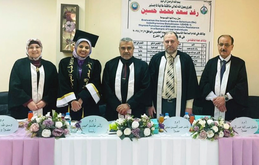 College of Medicine, Al-Nahrain University discussed a master dissertation on evaluating of selenium levels, thyroid function in blood serum and body mass index with insulin resistance in a sample of individuals by the postgraduate student, Ms. Raghad Saad.