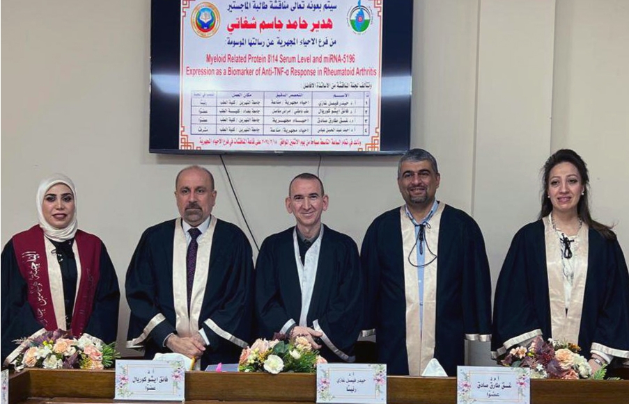 College of Medicine, Al-Nahrain University discussed a master dissertation on the serum level of calprotectin and expression of response to infliximab in rheumatoid arthritis by the postgraduate student, Ms. Hadeer Hamid Jassim.