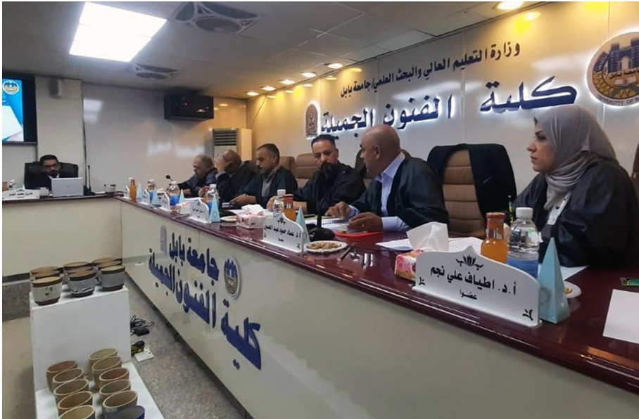 College of Fine Arts, University of Babylon discussed a Ph.D. thesis on the effect of adding ground carbonate to glass and applying it to a colored pottery surface by the postgraduate student, Mr. Farouk Muhammad Khudair.