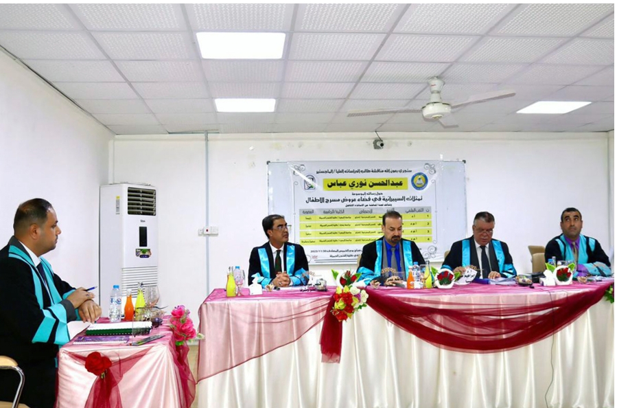 College of Fine Arts, University of Basrah discussed a master dissertation cyber representations in the space of children's theater performances by the postgraduate student, Mr. Abdel Hassan Nouri Abbas.