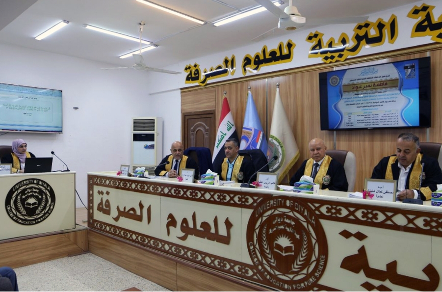 College of Education for Pure Sciences, University of Diyala discussed a master dissertation on studying of cadmium ion adsorption from aqueous solutions via biochar catalyzed from different sources and conditions and treated with silver oxide nanoparticles by the postgraduate student, Ms. Fatima Namir.