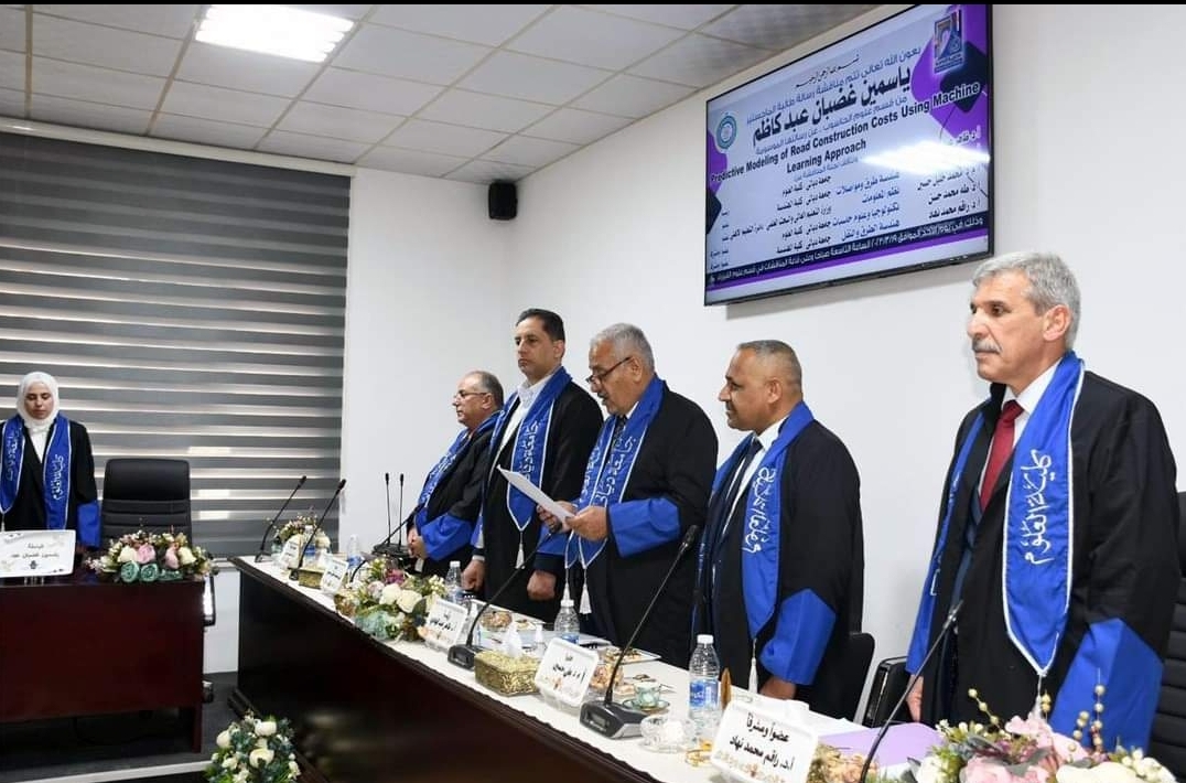 College of Science, University of Diyala discussed a master dissertation on predictive modeling of road construction costs via using a machine learning approach by the postgraduate student, Mrs. Yasmine Ghadban Abid.