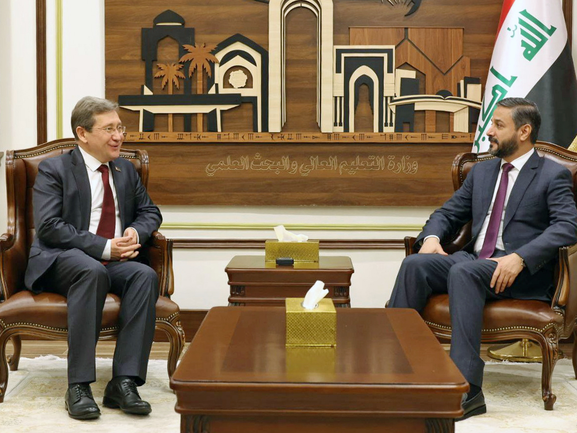 During a meeting with the Ambassador of the Republic of Belarus to Iraq, Mr. Victor Rybak, His Excellency, Minister of Higher Education and Scientific Research, Dr. Naeem Abd Yaser Al-Aboudi reviewed the path of scientific and academic cooperation between the two countries.