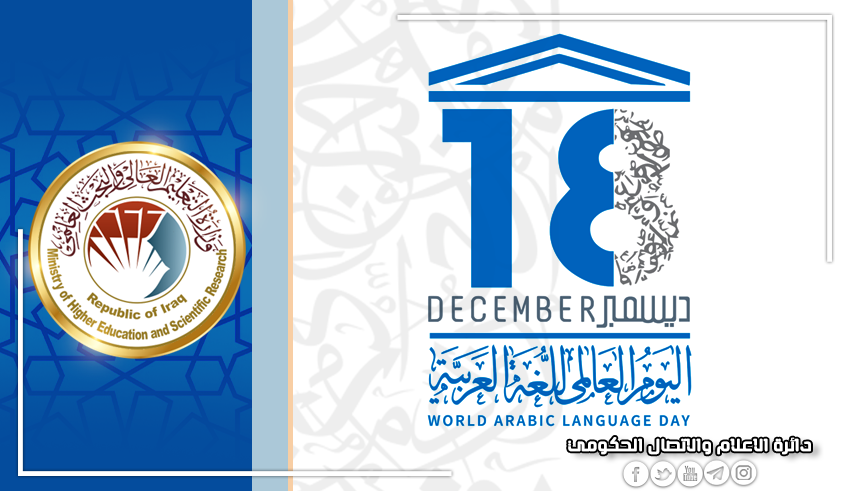 His Excellency, Minister of Higher Education and Scientific Research, Dr. Naeem Abd Yaser Al-Aboudi said that “We send our congratulations to all our Arab and Islamic peoples on the occasion of the International Day of the Arabic Language, which has a strong historical and existential connection to the Holy Qur’an and carries a great wealth of literature, culture and communication among generations”.