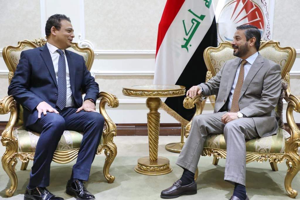 During a meeting with the Ambassador of the Arab Republic of Egypt to Iraq, Mr. Walid Muhammad Ismail, His Excellency, Minister of Higher Education and Scientific Research, Dr. Naeem Abd Yaser Al-Aboudi reviewed prospects for scientific and academic cooperation between the two countries.