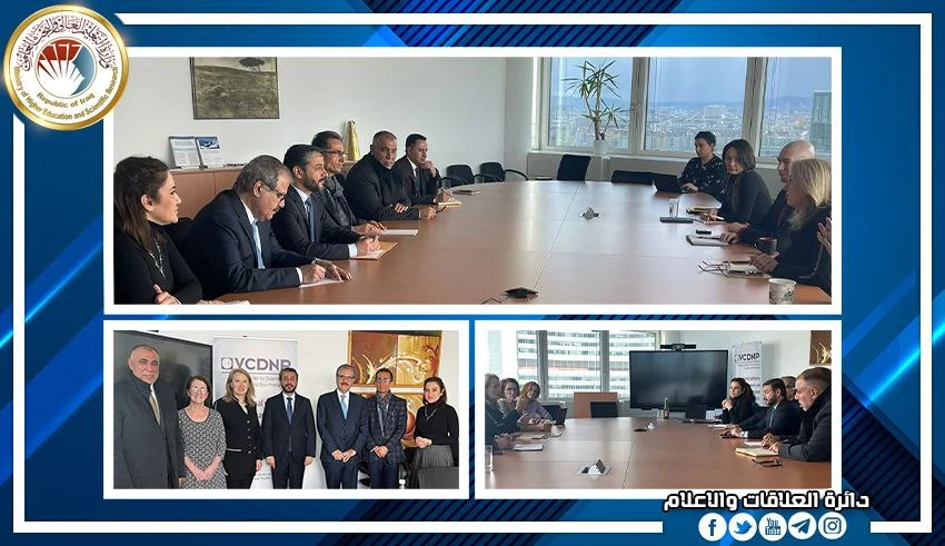 During a meeting with the Executive Director of the Vienna Center for Disarmament and Non-Proliferation (VCDNP), Mrs. Elena K. Sokova, His Excellency, Minister of Higher Education and Scientific Research, Science and Technology and the Head of the Iraqi Atomic Energy Authority, Dr. Naeem Abd Yaser Al-Aboudi reviewed aspects of cooperation in the field of peaceful technologies and increasing opportunities for training and joint programs.
