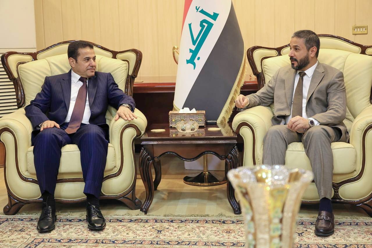 During a meeting with the National Security Adviser, Mr. Qassim Al-Araji and his accompanying delegation, His Excellency, Minister of Higher Education and Scientific Research, Dr. Naeem Abd Yaser Al-Aboudi reviewed aspects of cooperation and integration between the Ministry of Higher Education and Scientific Research and the National Security Advisory in the field of developing the skills of state employees according to the joint program that attracts employees from all institutions and in all disciplines and fields with the aim of qualifying and improving the level of performance and skills in the light of a scientific vision and specialized professional programs.