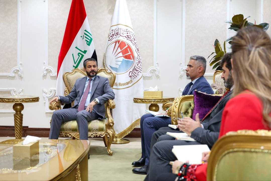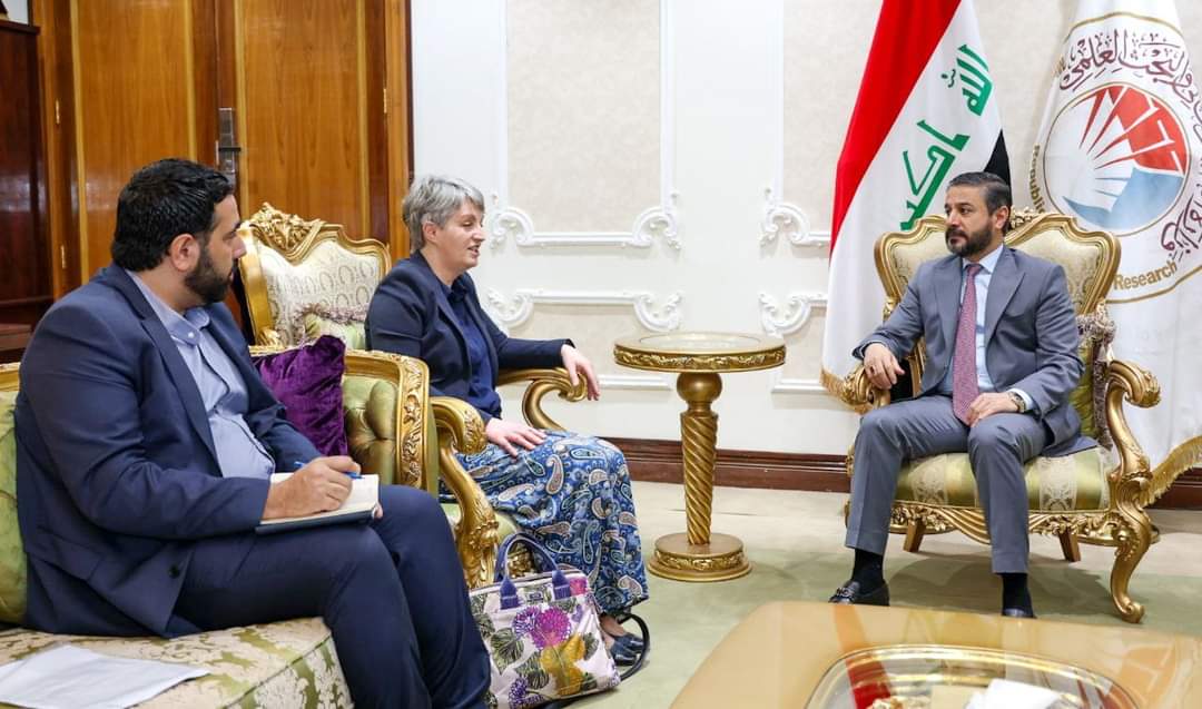 During a meeting with the delegation from University College London, His Excellency, Minister of Higher Education and Scientific Research, Dr. Naeem Abd Yaser Al-Aboudi Dr. Al-Aboudi reviewed coordination aspects with universities regarding the formulation of joint scientific cooperation programs.