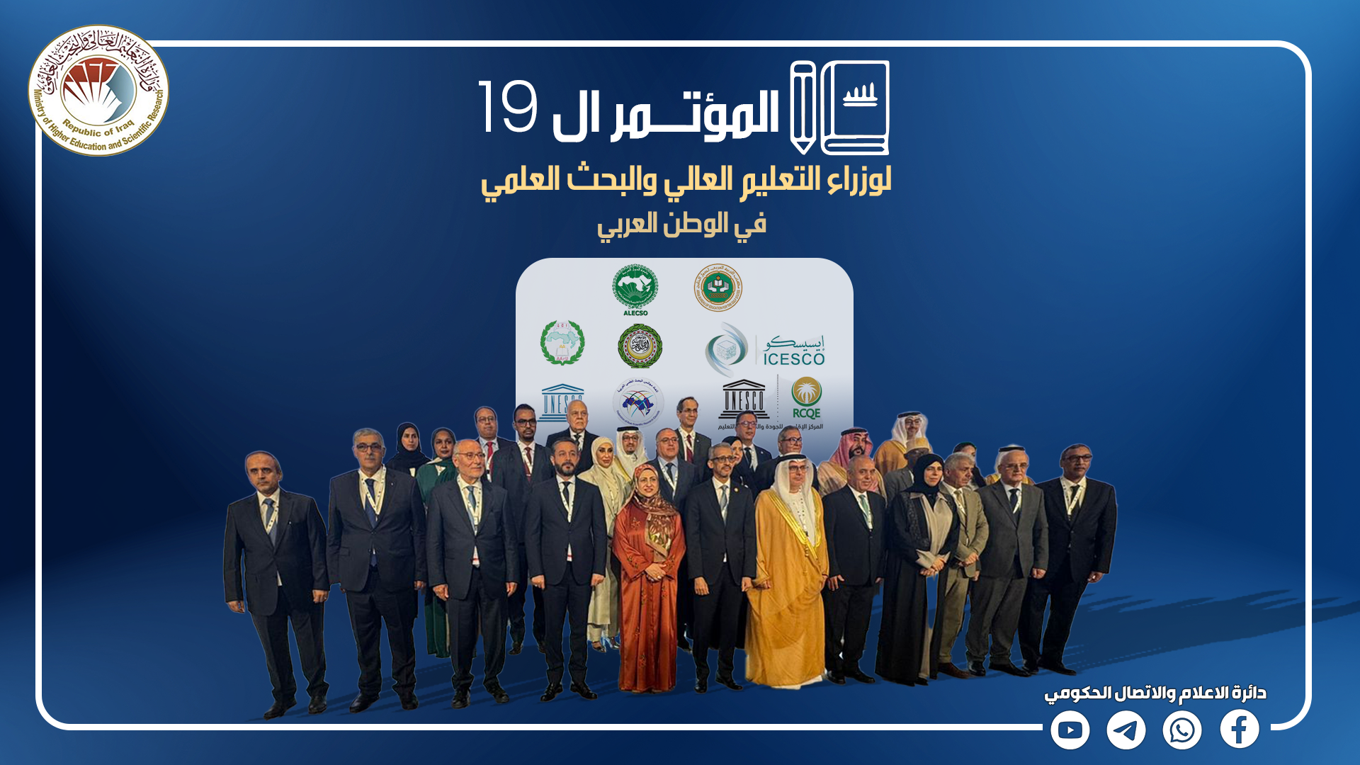 During the works of the 19th Conference of Ministers of Higher Education and Scientific Research in the Arab World, hosted by the United Arab Emirates in cooperation with the Arab League Educational, Cultural and Scientific Organization (ALECSO), His Excellency, Minister of Higher Education and Scientific Research, Dr. Naeem Abd Yaser Al-Aboudi confirmed the readiness and preparedness of Iraq and its institutions to host the work of the twentieth session of the Conference of Ministers of Higher Education in the Arab World.