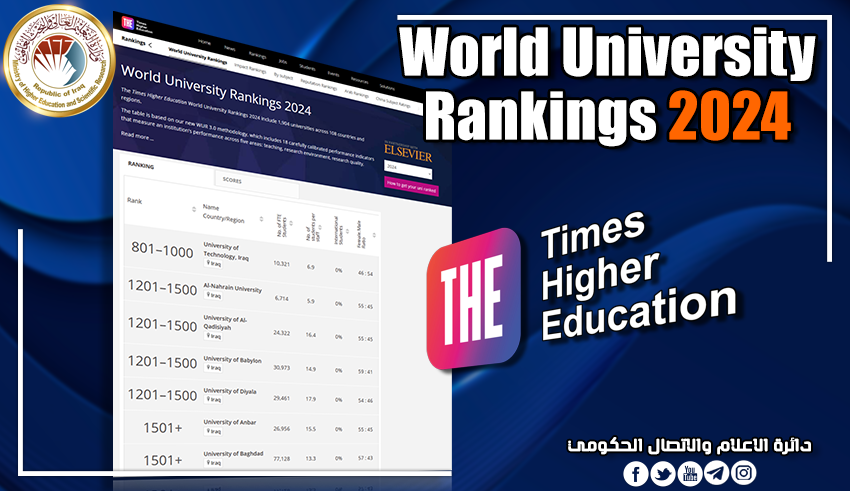 Ministry of Higher Education and Scientific Research reviewed that Times World Ranking announced the results of its new edition for the year 2024, which classified and evaluated one thousand nine hundred and four universities from one hundred and eight countries around the world.
