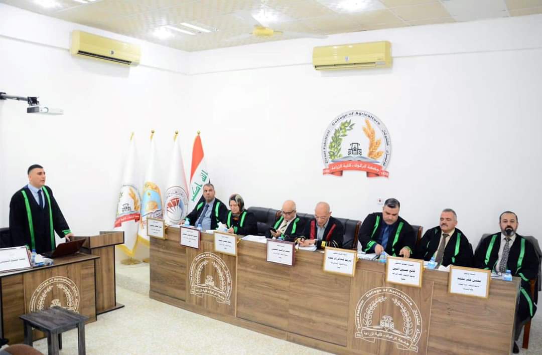 College of Agriculture, University of Kirkuk discussed a Ph.D. thesis on the effect of spraying with local anemone flower extract and isoflurane in reducing economic losses resulting from the stress of transporting broiler chickens by the postgraduate student, Mr. Muhammad Sabih Salman.