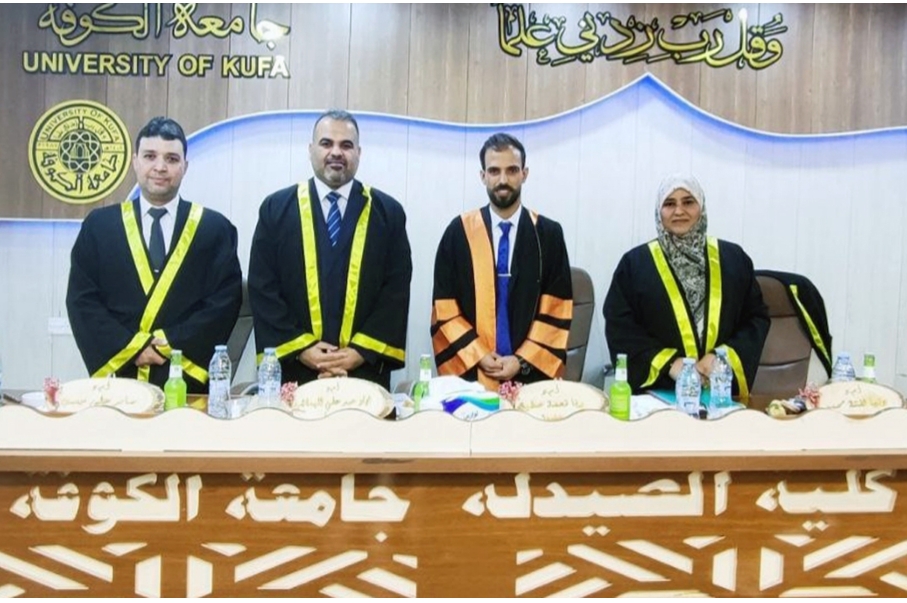 College of Pharmacy, University of Kufa discussed a master dissertation on conducting a chemical manufacturing and studying the molecular docking of adding at position 5 of benzofuran-2-carboxamide containing 1,3,4-thiadiazole as anti-cancer substances by the postgraduate student, Mr. Ali Joain Saqar.