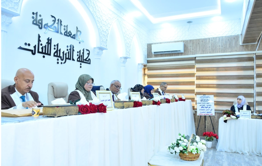 College of Education for Women, University of Kufa discussed a Ph.D. thesis on geomorphological hazards and their impact on human activity using modern geographic techniques by the postgraduate student, Ms. Sanaa Abdul Hadi.