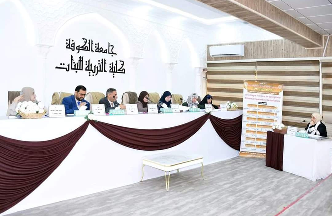 College of Education for Women, University of Kufa discussed a Ph.D. thesis on using of integral transformation to solve partial differential equations and its applications by the postgraduate student, Ms. Rehab Ali Khudair.