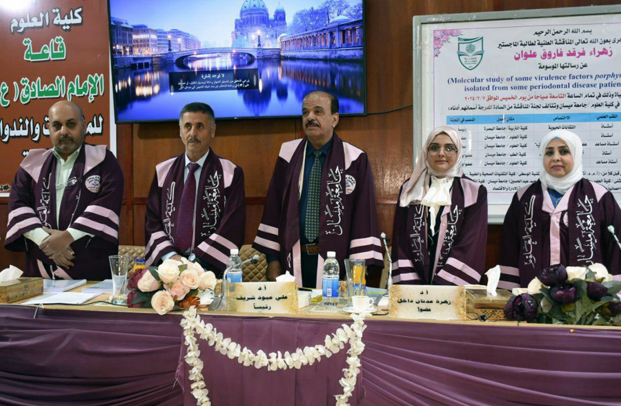 College of Science, University of Misan discussed a master dissertation on isolating and molecular diagnosing of anaerobic bacterial isolates by the postgraduate student, Mrs. Zahraa Farqad Farouk.