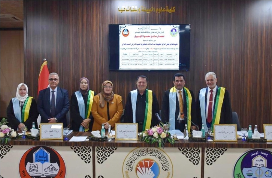 College of Environmental Sciences and Technologies, University of Mosul discussed a master dissertation on evaluating the effectiveness of some natural products against bacterial strains that cause food poisoning diseases by the postgraduate student, Mrs. Intisar Saleh Al-Jubouri.