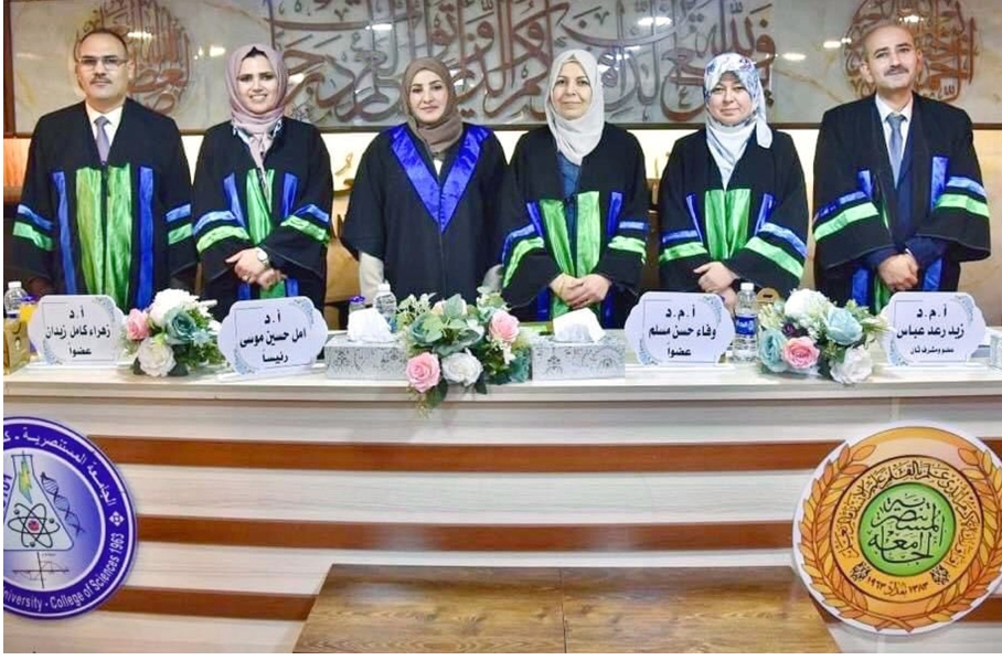 College of Science, Mustansiriyah University discussed a Ph.D. thesis on the anti-biofilm and anti-cancer activity of arginase purified from Pseudomonas aeruginosa bacteria isolated from soil and wastewater by the postgraduate student, Mrs. Zainab Abbas Abdel.