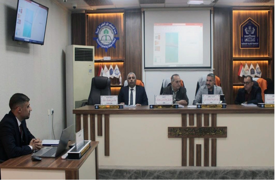 College of Engineering Technology-Mosul, Northern Technical University discussed a master dissertation on the effects of gradation of aggregates designed by Bayley's method on the performance of asphalt mixtures, by the postgraduate student, Mr. Imad Daoud Suleiman.