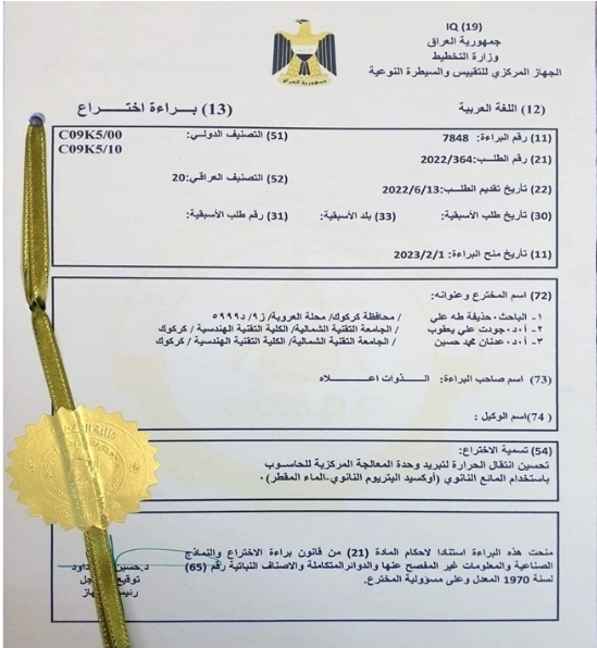 Northern Technical University obtained a joint patent on improving heat transfer for computer CPU cooling using a Nano-inhibitor (Nano-yettropium oxide - distilled water).