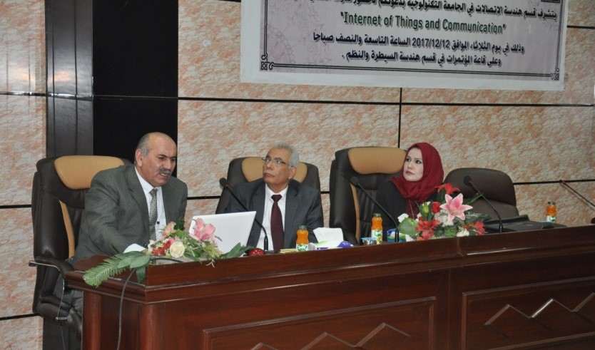 The symposium, in which a number of researchers and specialists participated, included delivering two lectures on internet of things, applications, fiber optic networks for Internet of things, collateral damage in wireless communication equipment and their impact on human health.