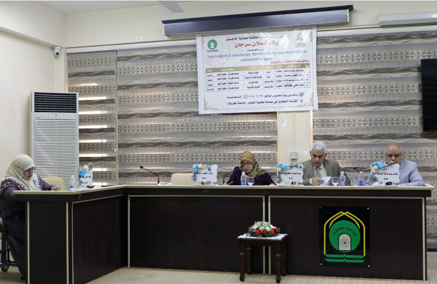College of Science, University of Karbala discussed a master dissertation on theoretically enhancing radiation therapy via using Nano-particles as a radiation-sensitive agent by the postgraduate student, Mrs. Walaa Shaalan Sarhan.