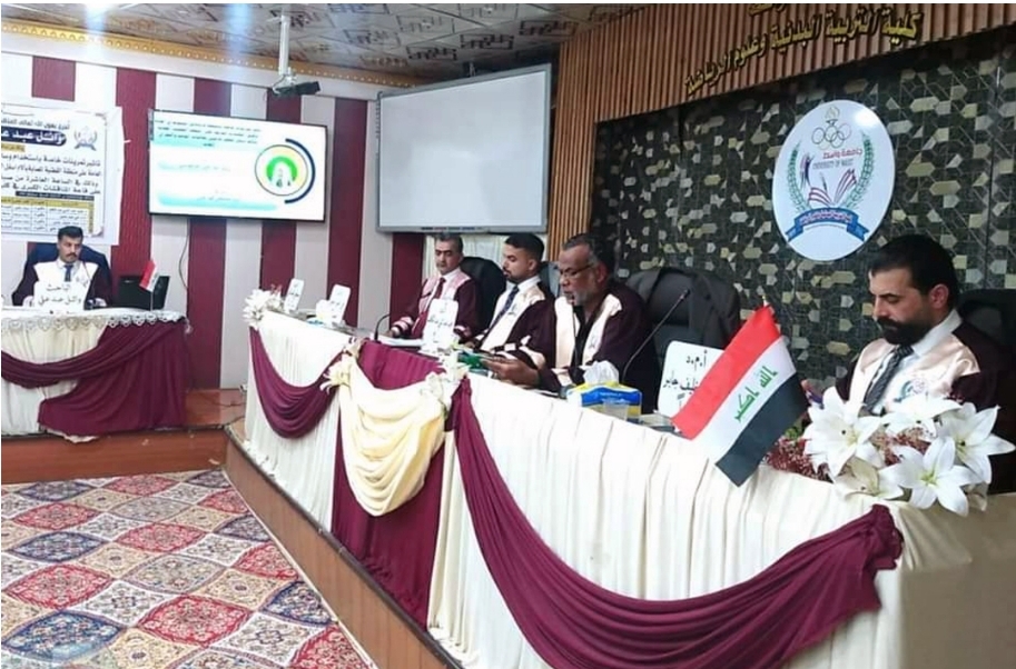 College of Physical Education and Sports Sciences, University of Wasit discussed a master dissertation the effect of rehabilitative exercises for the working muscles on the lumbar region affected by lower back pain for players in jumping and jumping events in athletics under 20 years old by the postgraduate student, Mr. Wael Abd Ali.
